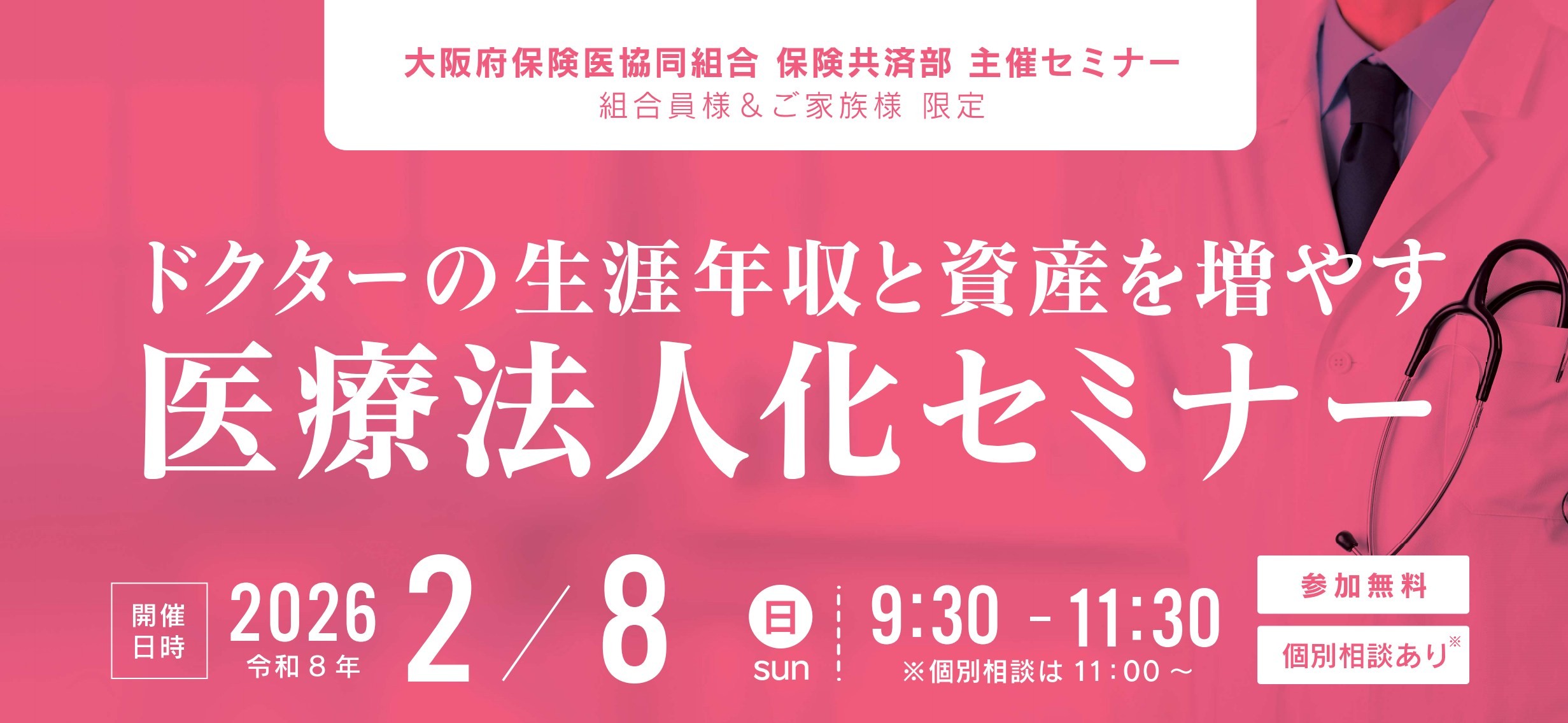 2026年2月8日(日)に、ドクターの生涯年収と資産を増やす医療法人化セミナーを開催いたします。【セミナー講演内容・講師】